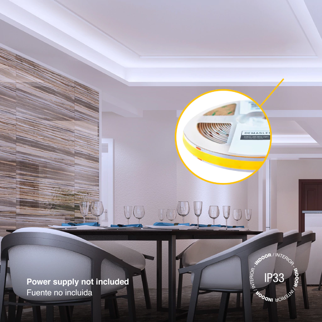 enlightened Múltiples aplicaciones: debido a su mayor flexibilidad y mayor brillo, esta tira COB es perfecta para iluminación interior, iluminación doméstica y comercial, techos, paredes, clubes, bares, salones, salas de estar, salas de conferencias, iluminación de tareas, salas de exposición, pantallas, estanterías, armarios, guardarropas o al aire libre después de que se hayan realizado las instalaciones adecuadas para proteger la tira COB.